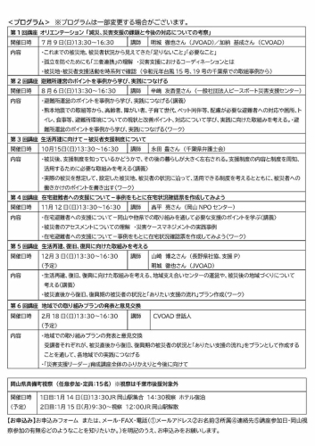 <参加費>全6回 3,000円(資料代)/岡山県真備町視察は自宅~集合場所までの交通費・食事代は自己負担